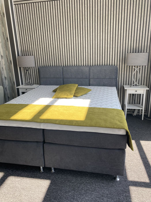 Stellen Sie sich Ihr eigenes Boxspringbett zusammen oder wählen Sie ein vorgefertigtes aus unserer großen Austellung.